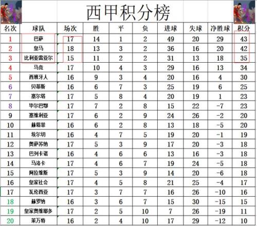 积分榜方面,皇马完胜塞维利亚后终于是再次在联赛中夺取连胜,先赛的他们暂时落后巴萨1分,领先少赛3场的比利亚雷亚尔7分,暂时排在第2。塞尔塔无力赢球,无法追上贝蒂斯,净胜球优势超过毕尔巴鄂竞技升至第7。